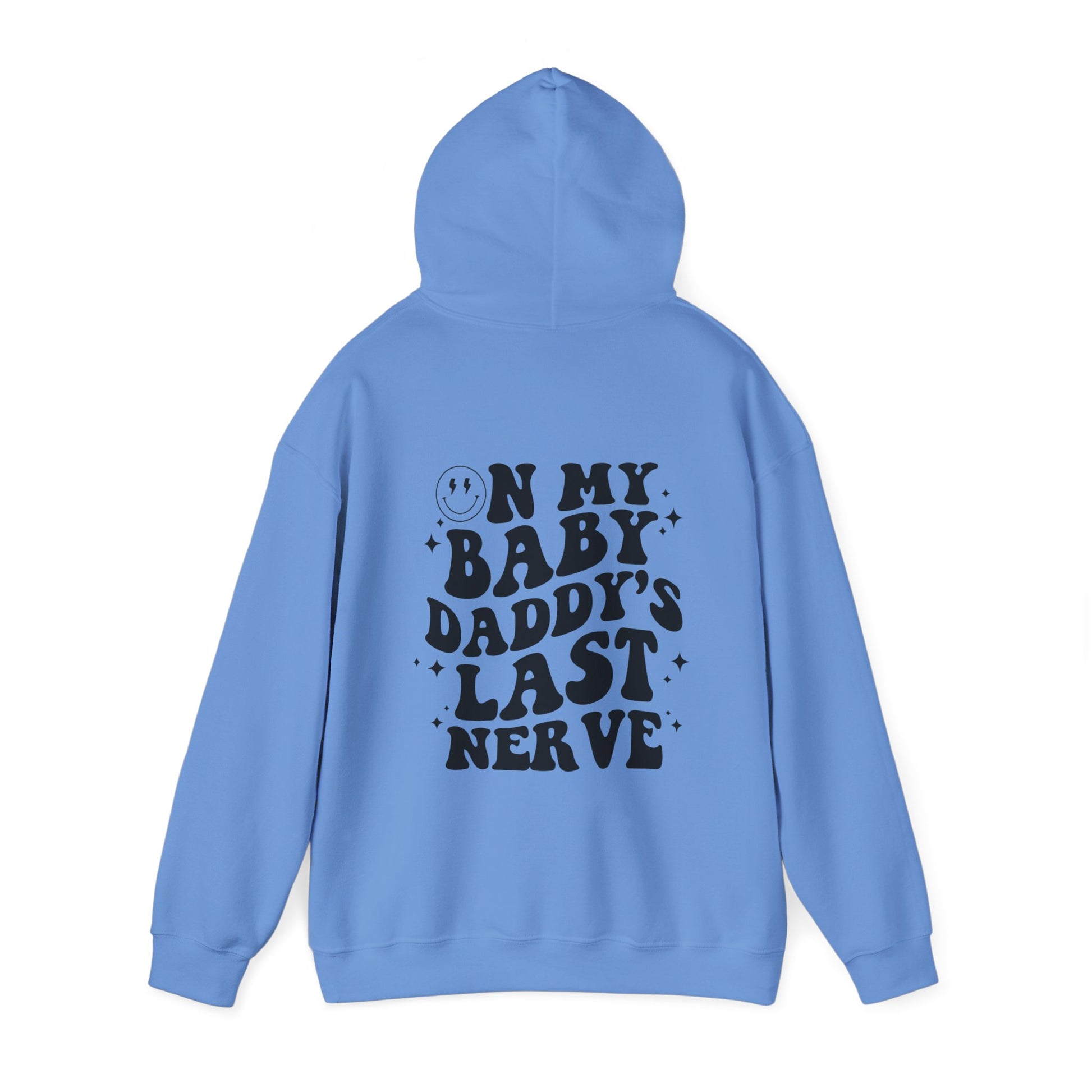 Check out our Baby Blue Unisex Hoodie! It's all about comfort and a good laugh with the slogan "On My Baby Daddy’s Last Nerve." Whether you're chilling at home or out and about, this hoodie has you covered. Wear it true to size for a snug fit or size up for that relaxed, oversized vibe. And with shipping in just 5-7 days, you'll be rocking this cozy statement piece in no time!