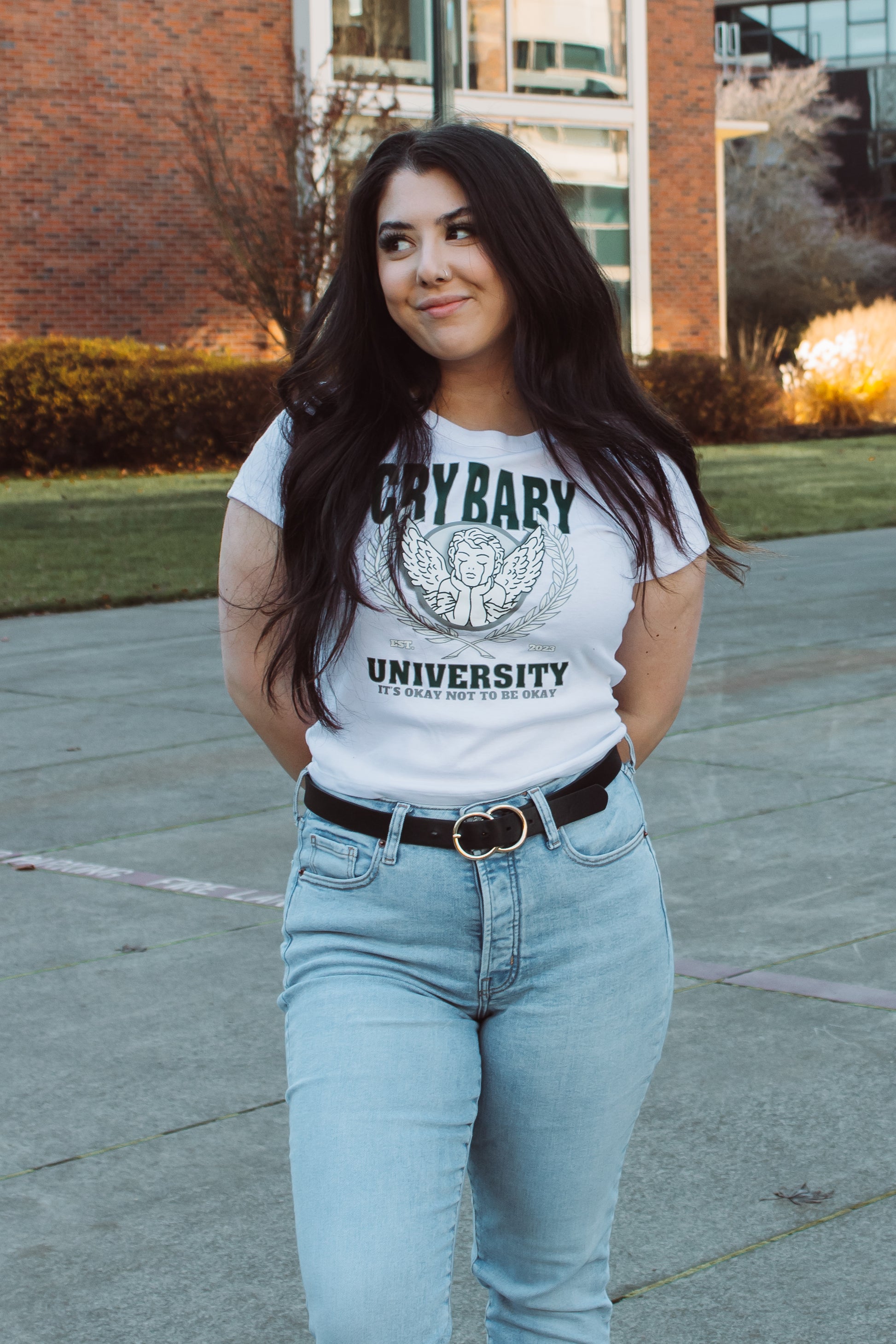 The university we belong to and where mental health matters! This baby tee is about a staple in your closet. Perfect for pairing up with the Cry Baby 2.0 Joggers or dress it up with denim!