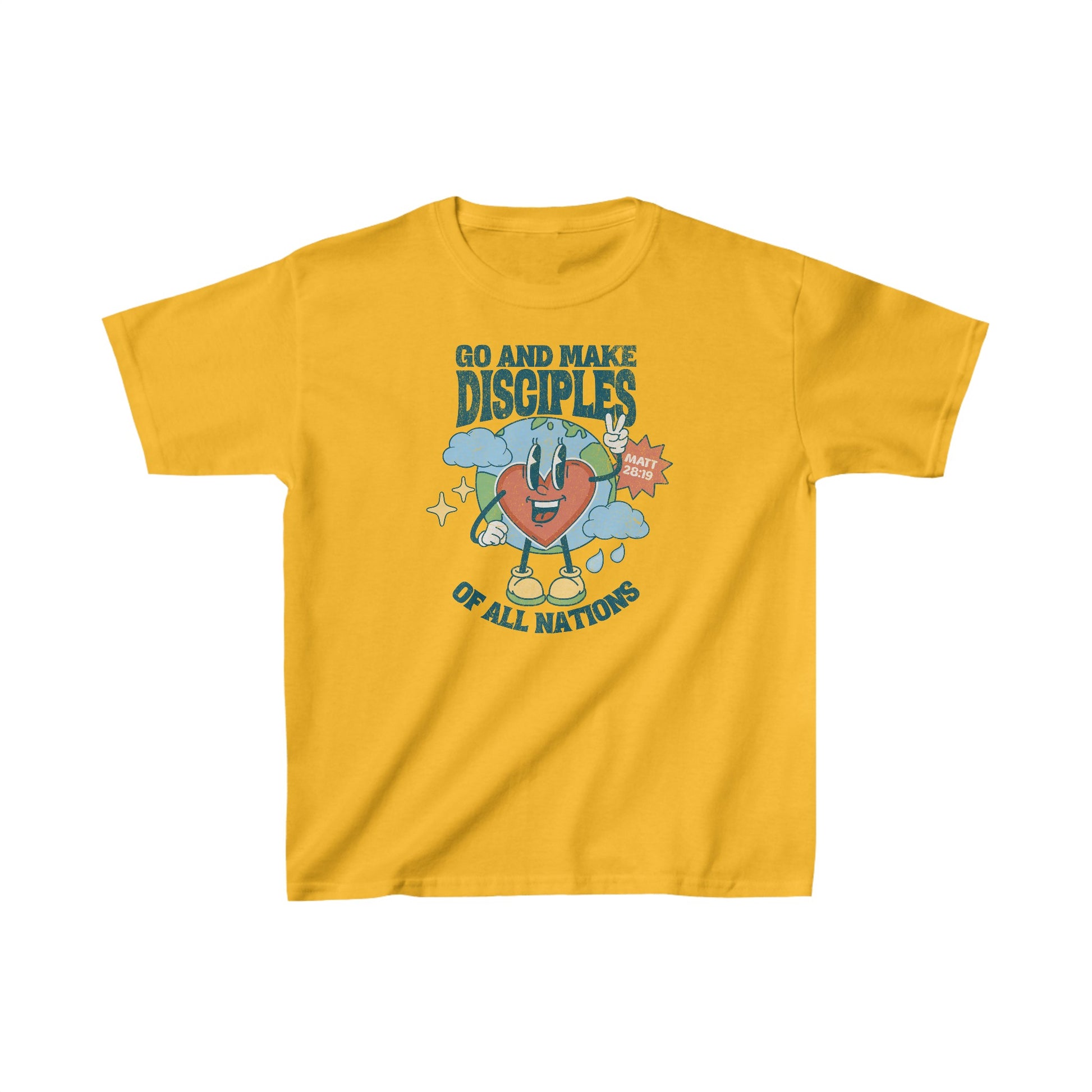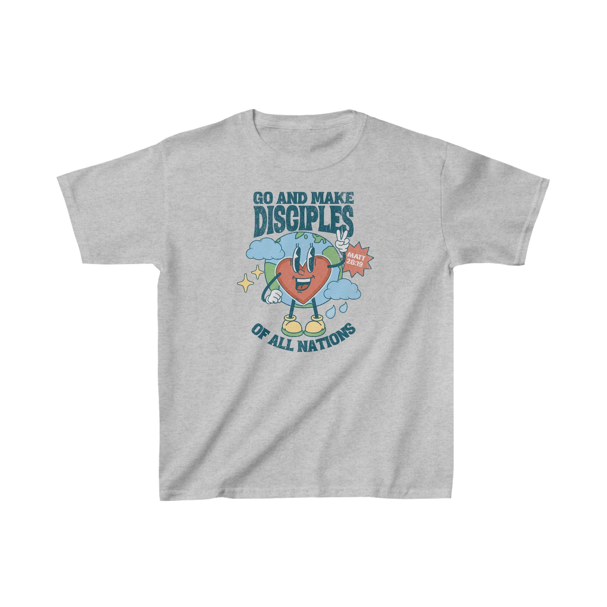 Introducing our Kids Tee featuring the inspiring message: "Go and Make Disciples of All Nations." This tee empowers young ones to embrace their role in spreading kindness, compassion, and understanding to all corners of the world. Crafted with care and comfort in mind, it's perfect for active kids on the go. Let your child shine as they wear this tee, reminding them of their potential to make a positive impact. Order now and ignite their journey of making a difference. Plus, it ships in just 5-8 days!